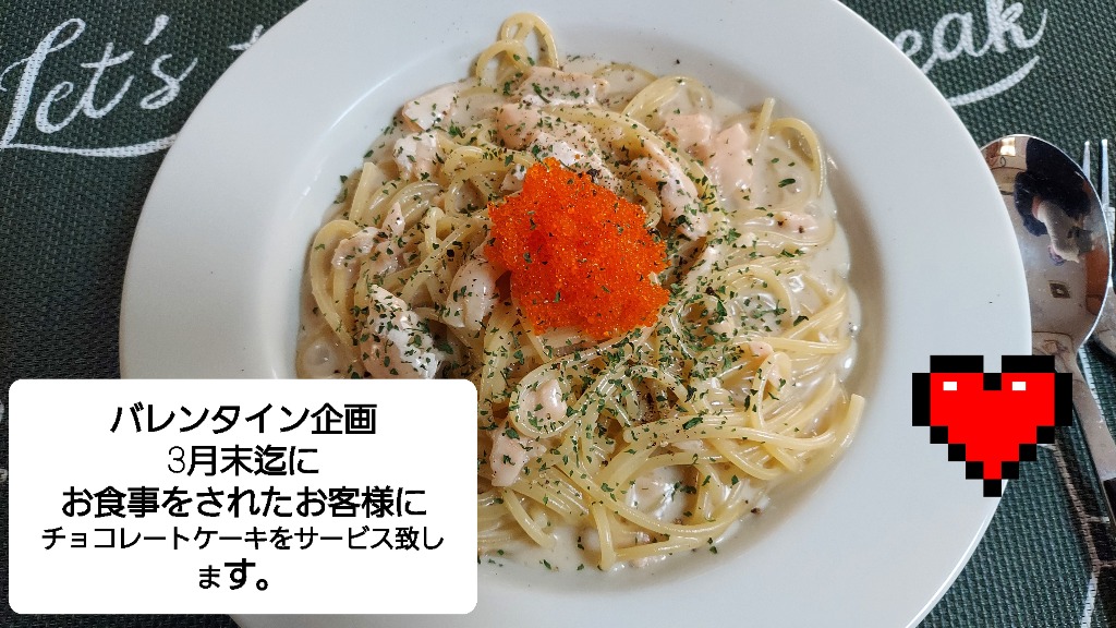 3月末までにお越しでお食事をされたお客様限定でチョコレートケーキをサービスさせて頂きます。
