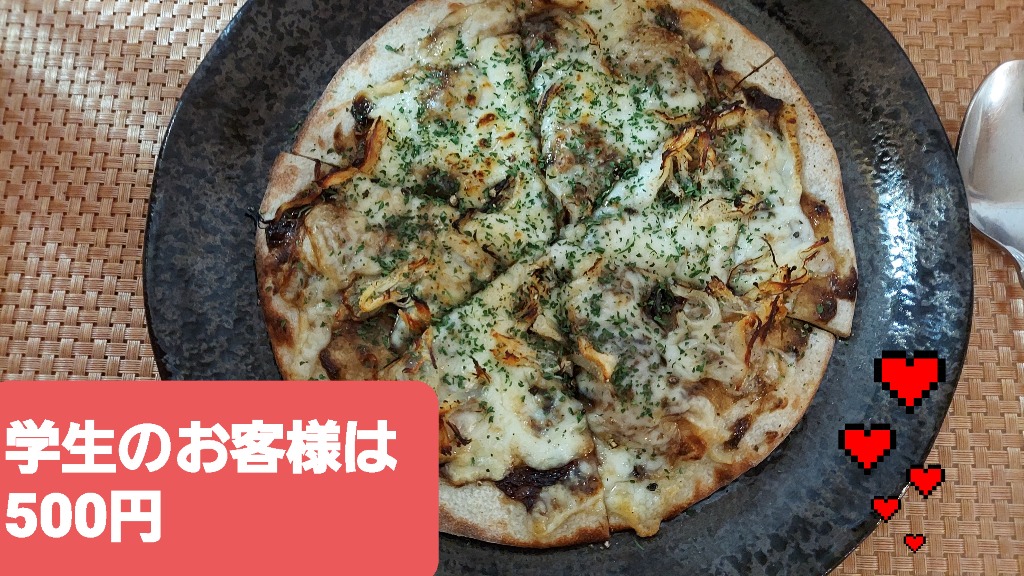 学生の方々は気まぐれパスタ、ピザは500円で提供致します。
