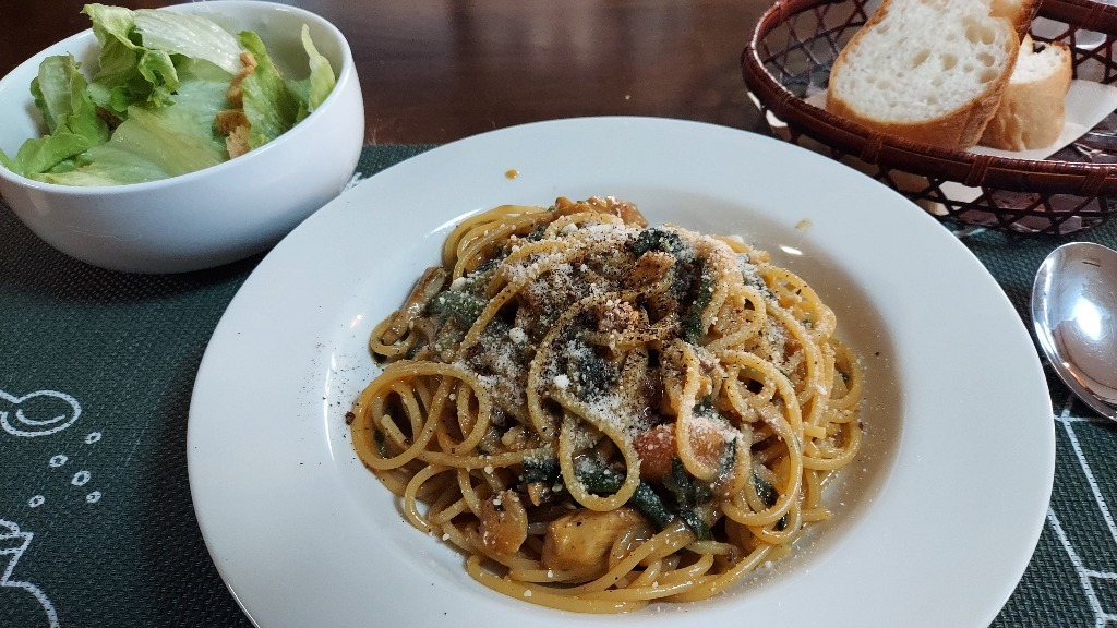 鯖カレーパスタです。